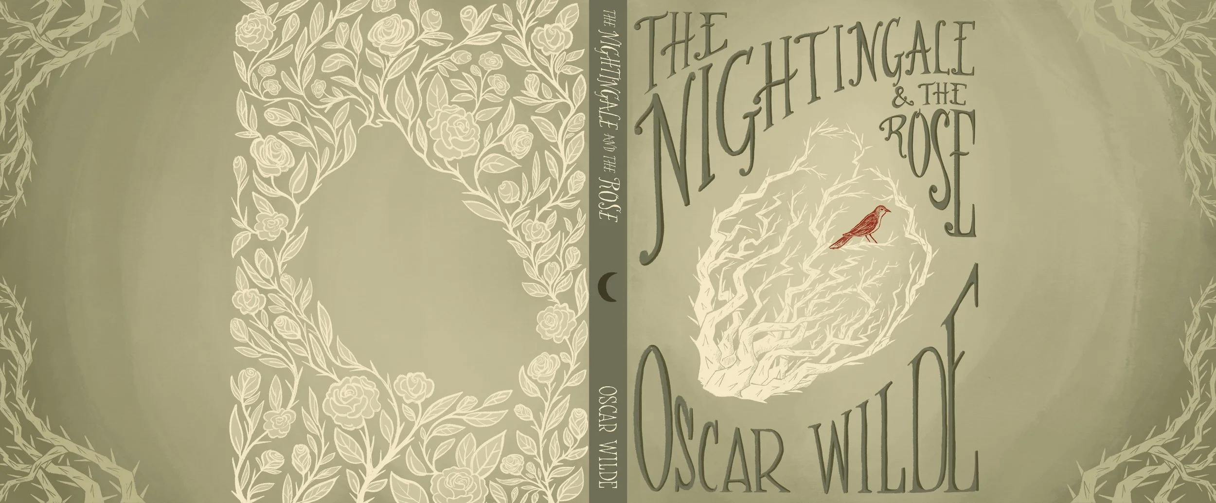 Book cover and endpaper pattern designed for the short story, The Nightingale & The Rose, by Oscar Wilde