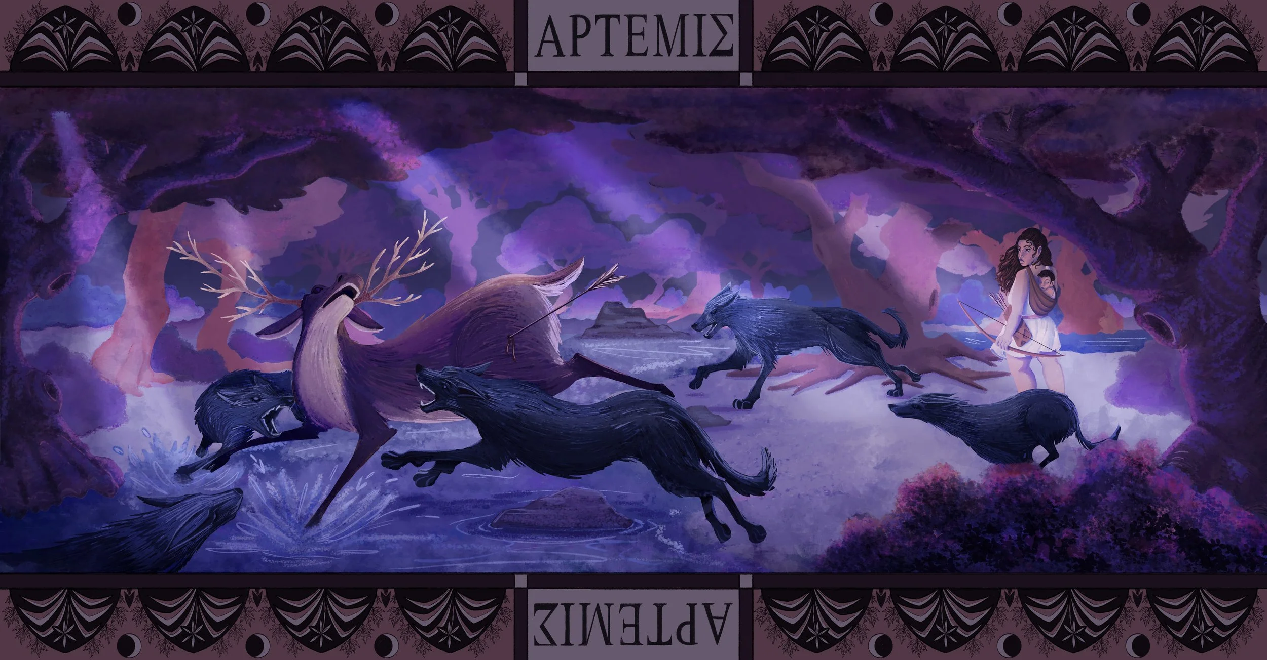 A binder cover design showing Artemis, the Goddess of the Hunt.